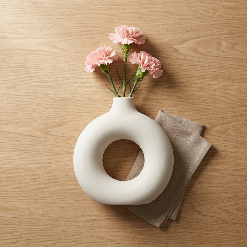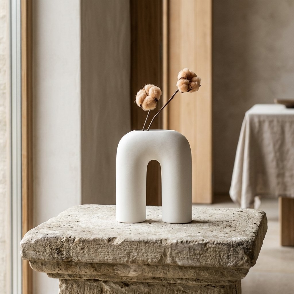We work in ceramic, clear glass, and refined metals—modern shapes in a neutral palette that mix across rooms and seasons.