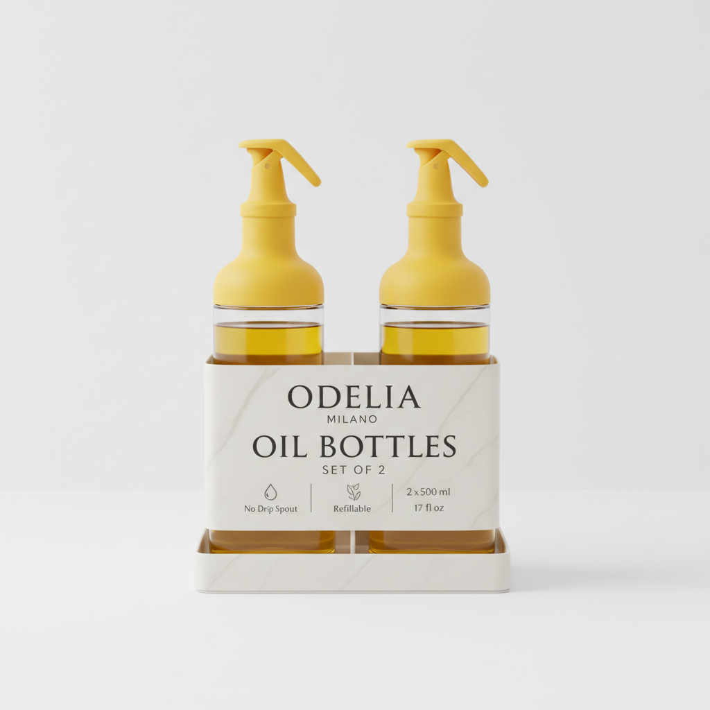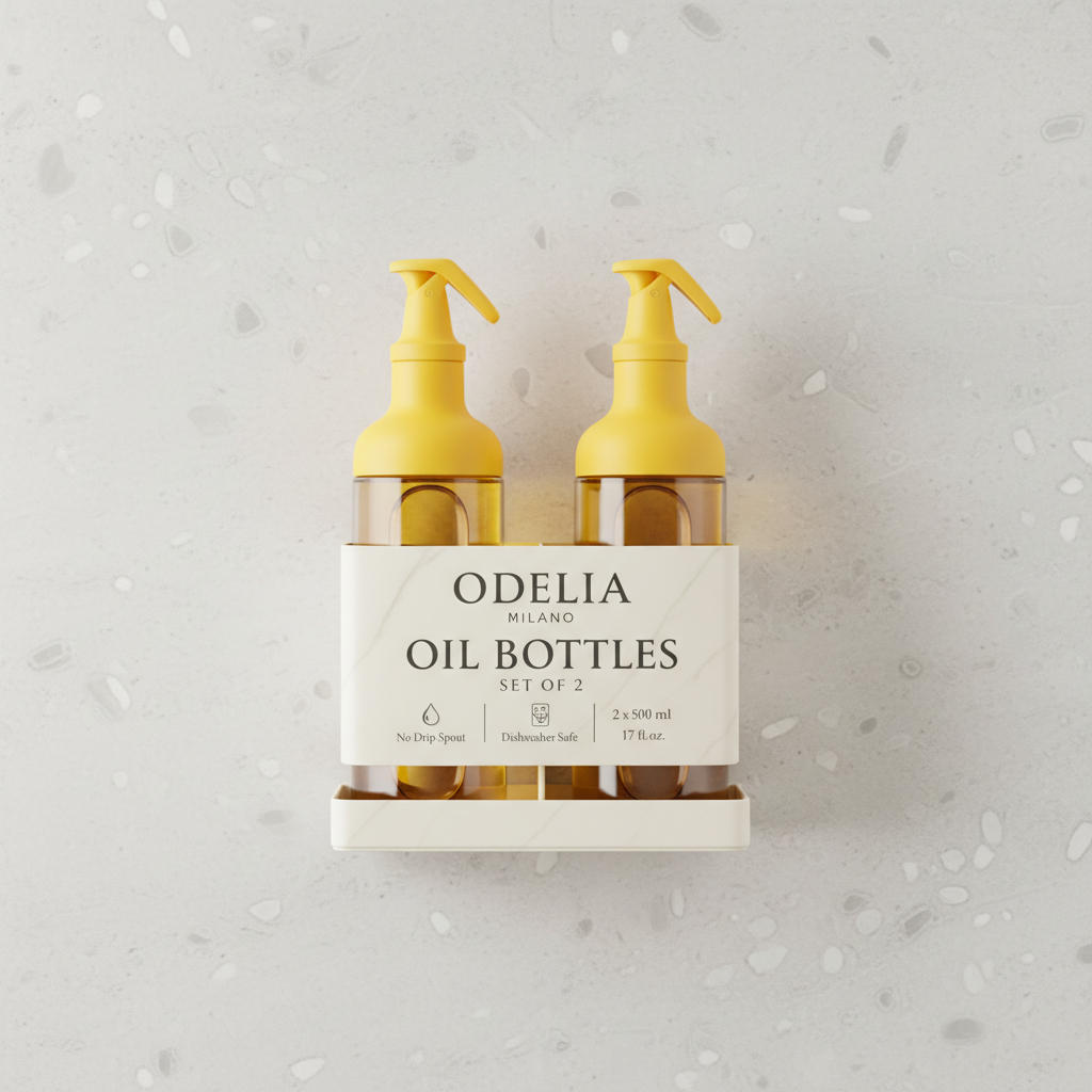 Finished in a vibrant Yellow color, this stylish bottle set adds a fresh and modern touch to your countertop. The included 5-piece easy-peel sticker pack helps you label different oils and sauces for better organization.