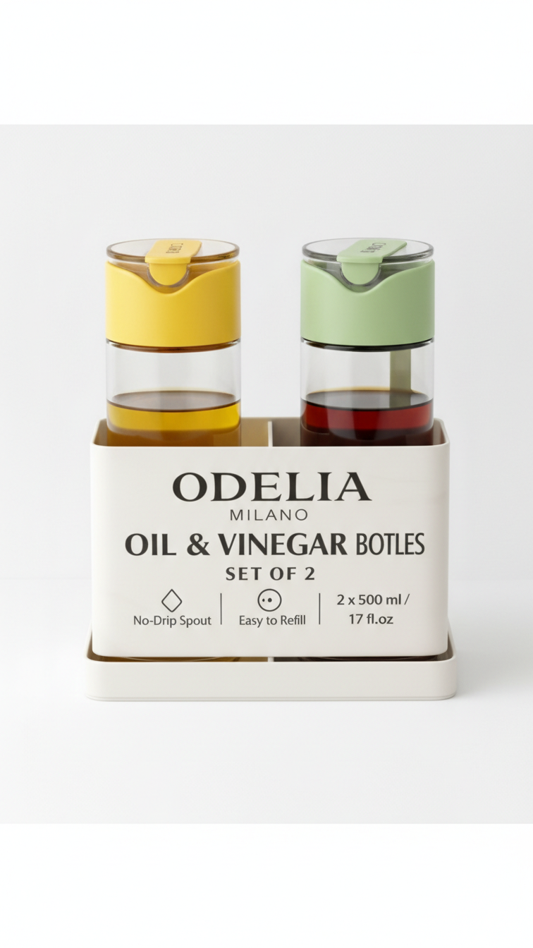 2PK 500ML Oil Bottle Set with Easy Pour Open/Close Spout – Multi Colored Pack.