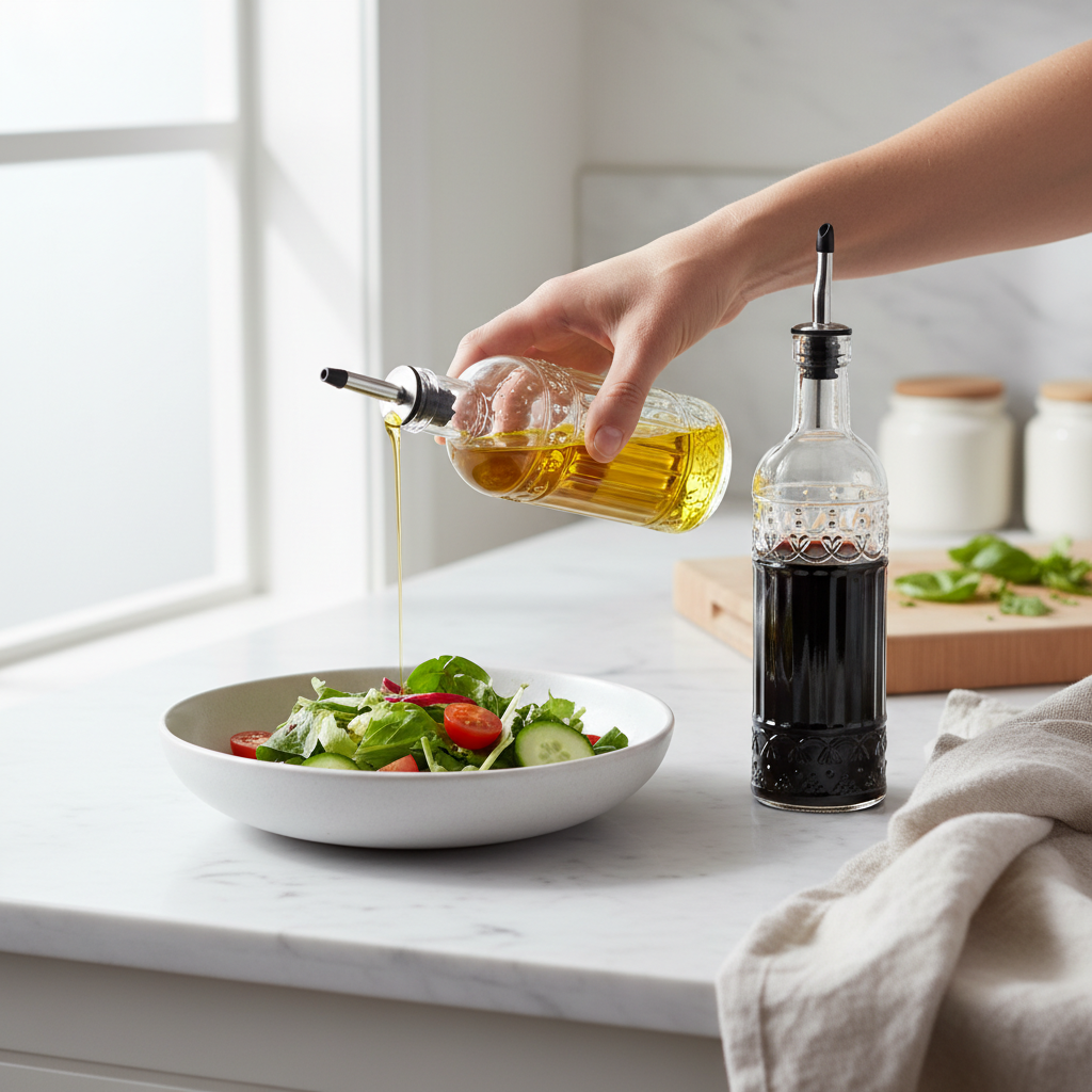 Perfect for olive oil, vegetable oil, vinegar, soy sauce, and other liquid condiments.