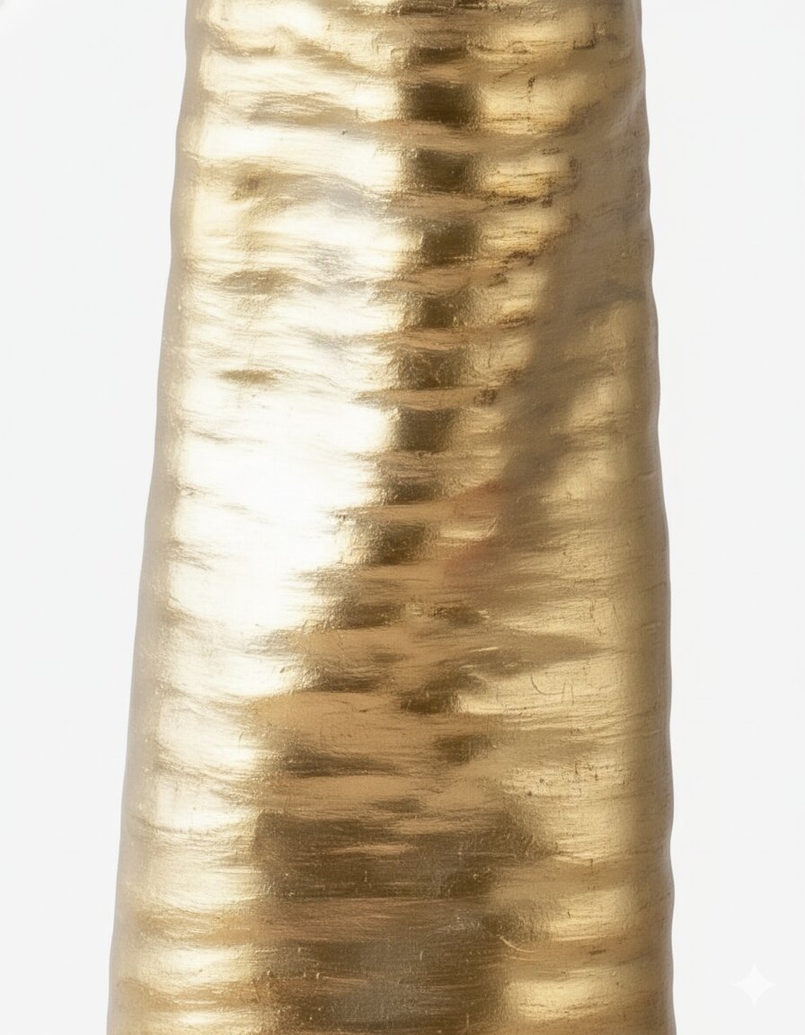 • Design: Elegant tapered cylinder in radiant gold, with the body encircled by irregular, hand-shaped horizontal ridges for a sense of movement and artisan flair