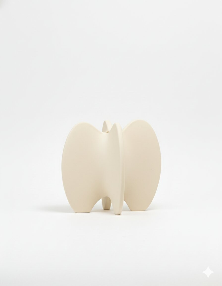 Elevate your styling with the Cream Modern Wave Ceramic Vase,  a contemporary statement piece that stands out with sleek symmetry and soft curves. Its distinctive butterfly-inspired silhouette and smooth matte finish create an eye-catching accent for both minimal and expressive arrangements.