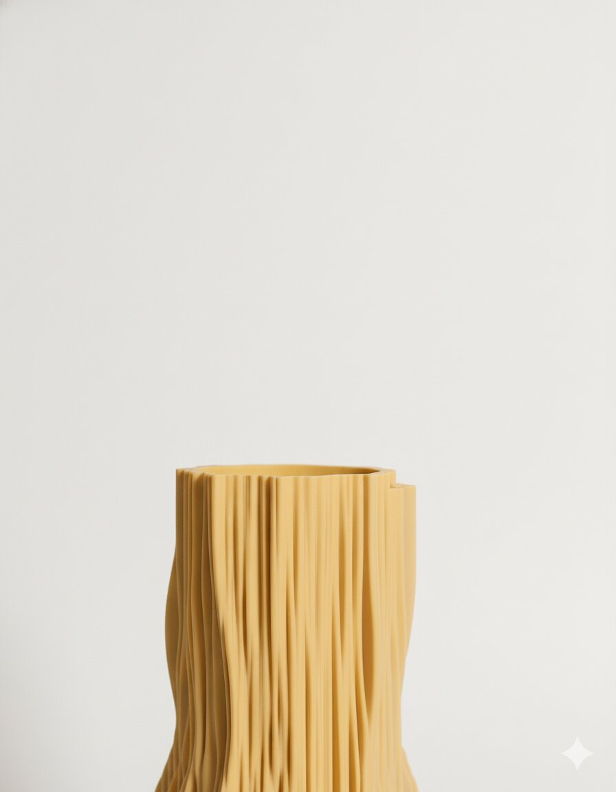 Large Yellow Irregular-Shaped Vase with Vertical Pattern