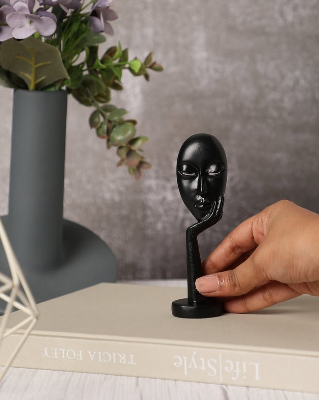 Add a bold artistic element to your décor with this Mini Black: Face Lift Ceramic Figurine. Sculpted in a minimalist style with a sleek black finish, this figurine depicts an abstract face resting atop a gracefully angled hand, offering visual interest and modern sophistication on shelves, desks, or coffee tables.