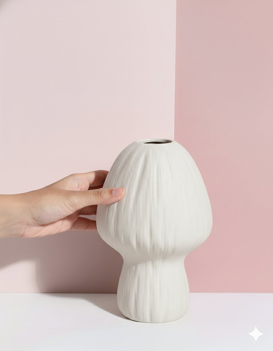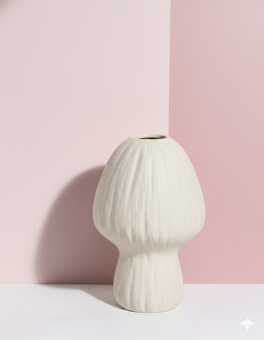 White Mushroom-Shaped Ceramic Vase