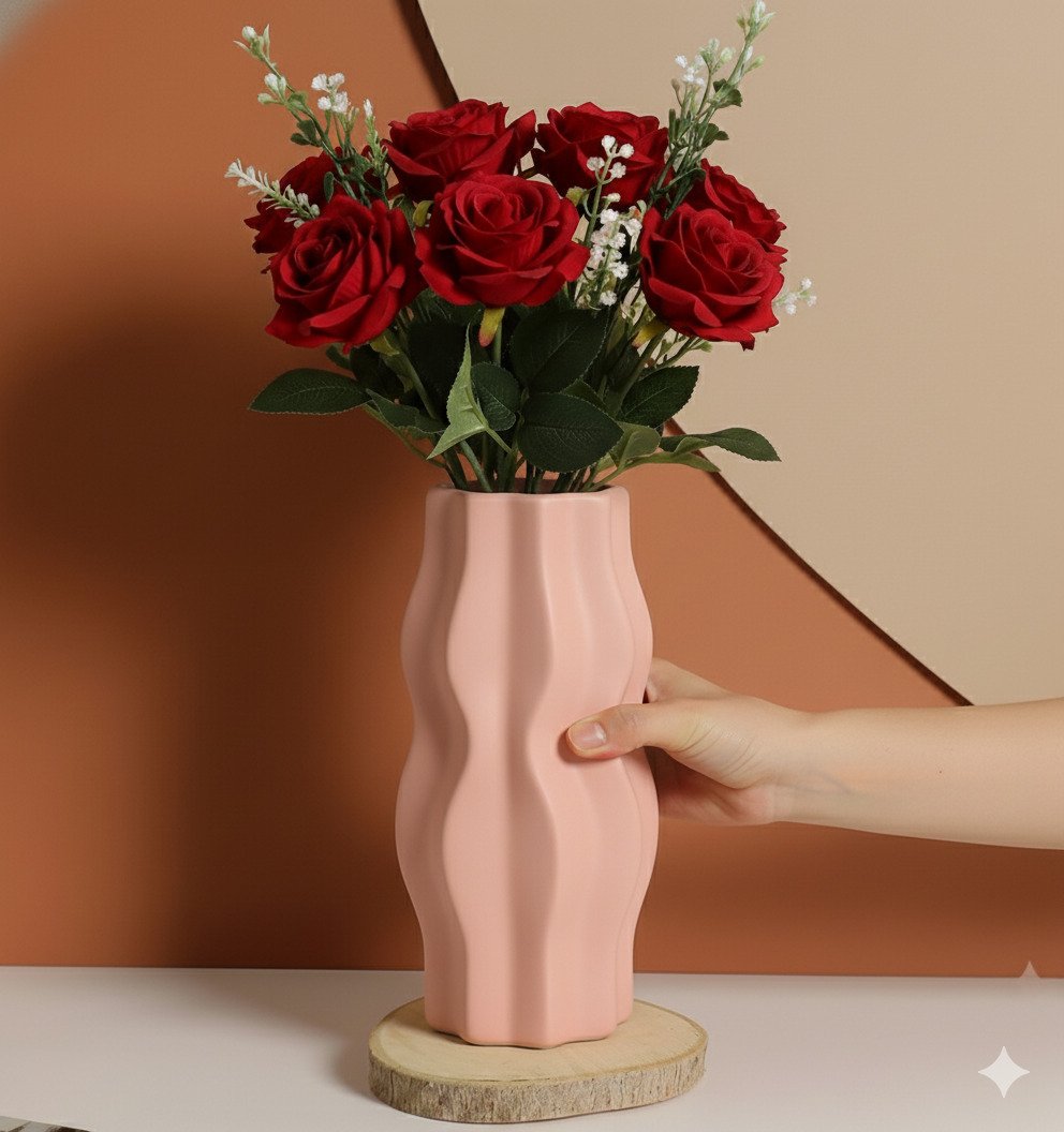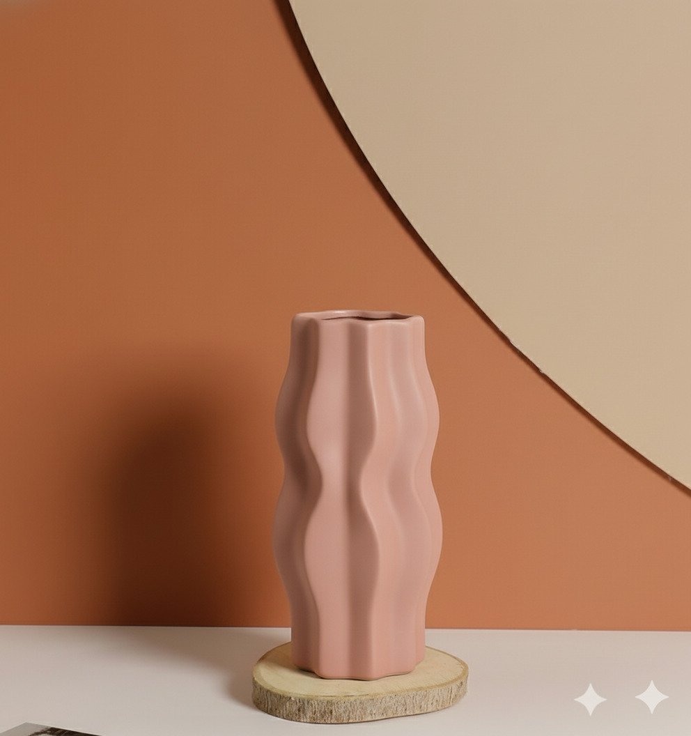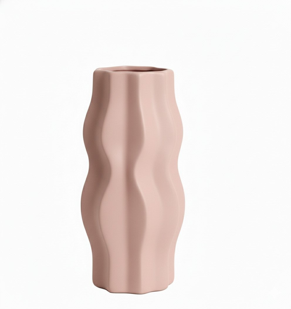 Introduce rich color and sculptural lines to your decor with this Matte Pink Wavy Vase, featuring a tall, slender silhouette wrapped in rhythmic vertical waves. The deep pink hue and velvety matte finish create a warm, modern backdrop for bold floral arrangements.