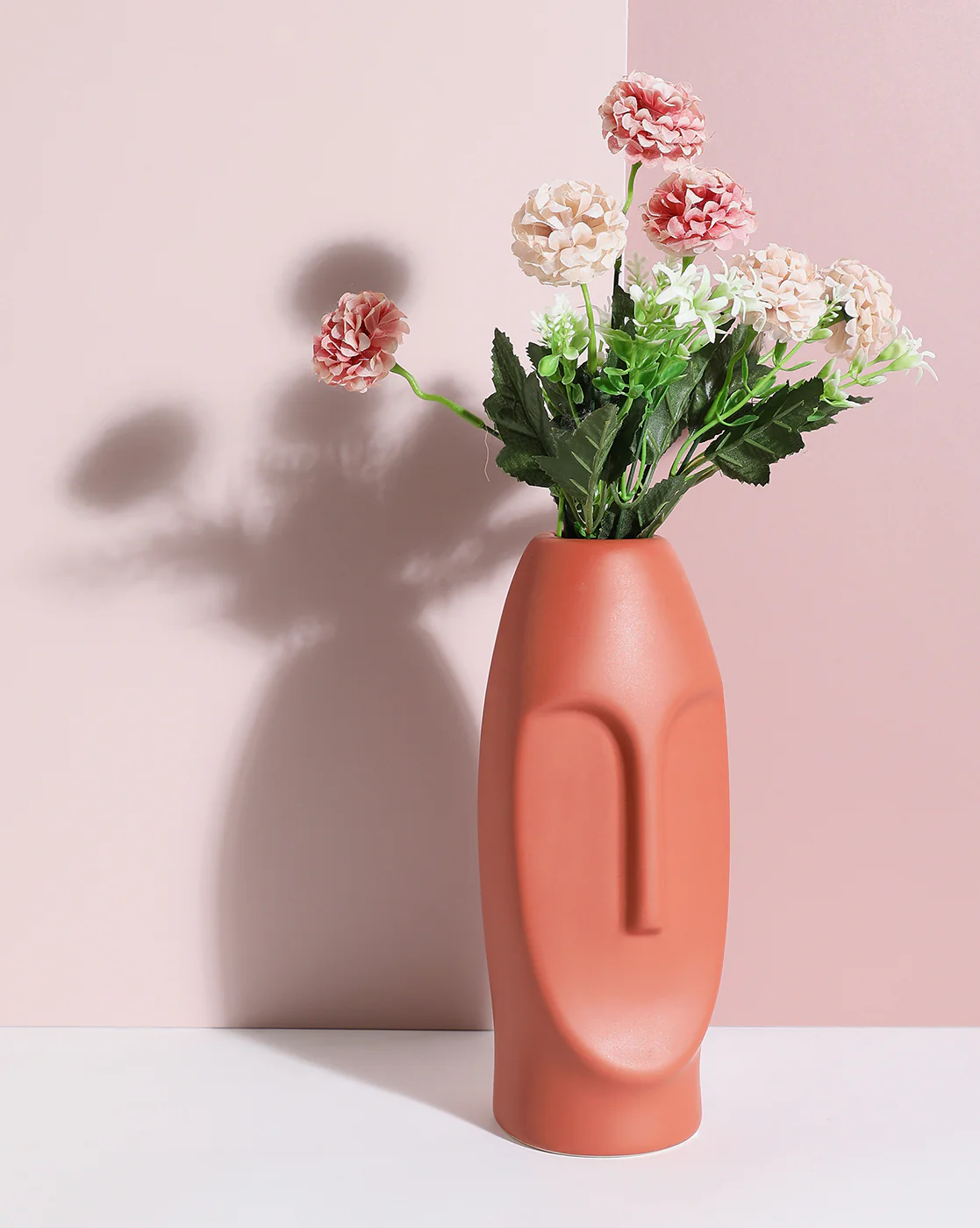 artistic touch to your space with this face-shaped ceramic vase in a striking red finish. Perfect for modern interiors, it blends sculpture and function for a standout decor piece.