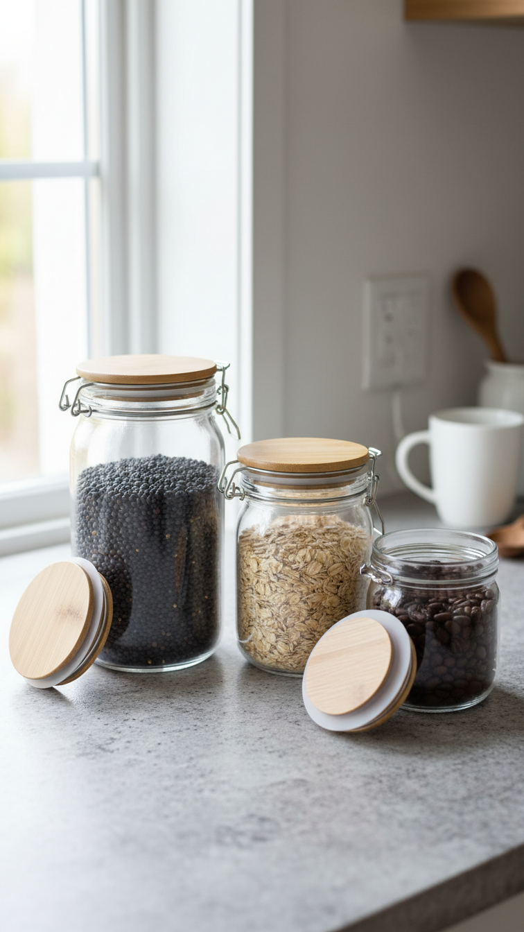 Enhance your pantry organization with this Set of 2 Airtight Clamp Jars featuring natural bamboo lids. Designed for freshness and durability, these jars provide an airtight seal to keep dry foods crisp and moisture-free.