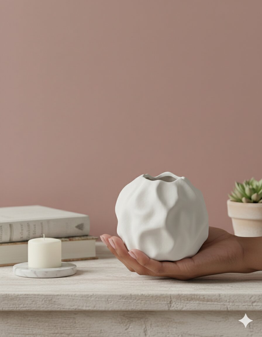 This vase is ideal for infusing your space with a sense of quiet artistry and contemporary charm.