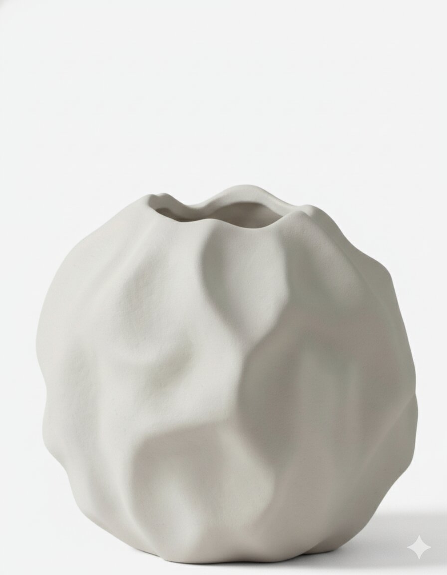 Bring soft sophistication to your vignette with this Small White Folded Vase, featuring an organic globe-like silhouette adorned with gentle folds and pleats. Its matte white finish radiates a fresh, modern feel, while the textured surface adds a subtle, handcrafted touch to any décor.