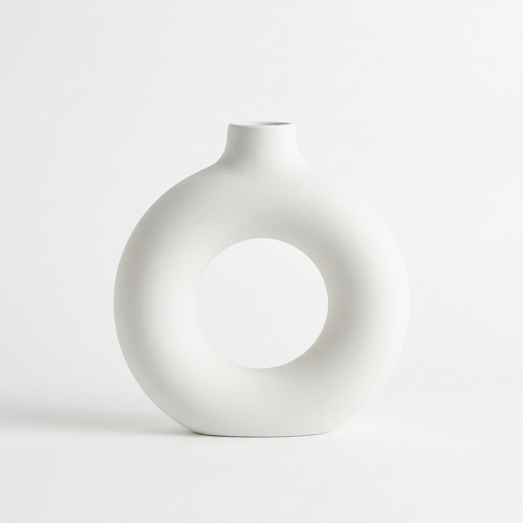White Sculptural Donut Ceramic Vase | Modern Artistic Home Décor