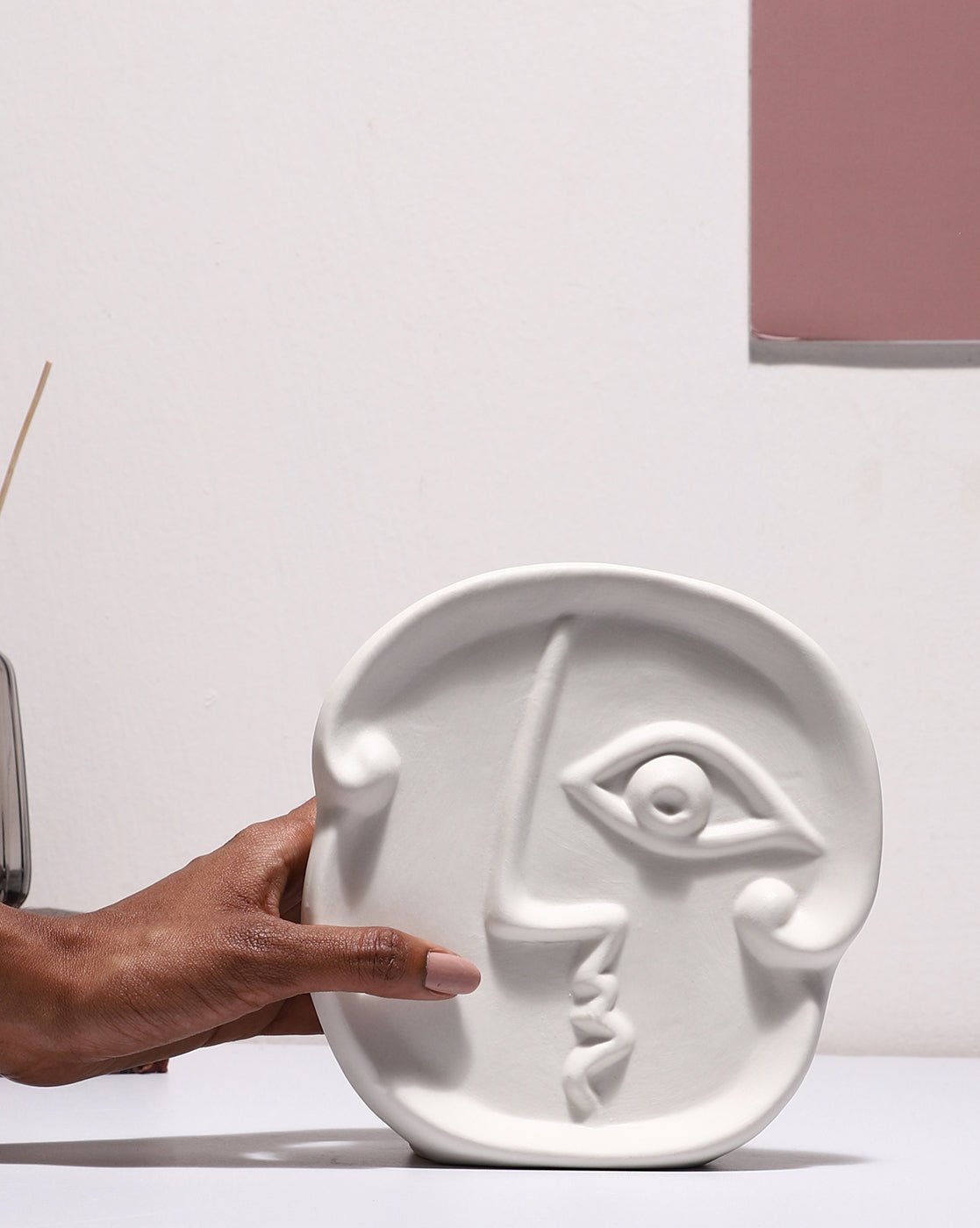 • Design: Rounded abstract face with geometric facial features, evoking gallery-worthy sophistication